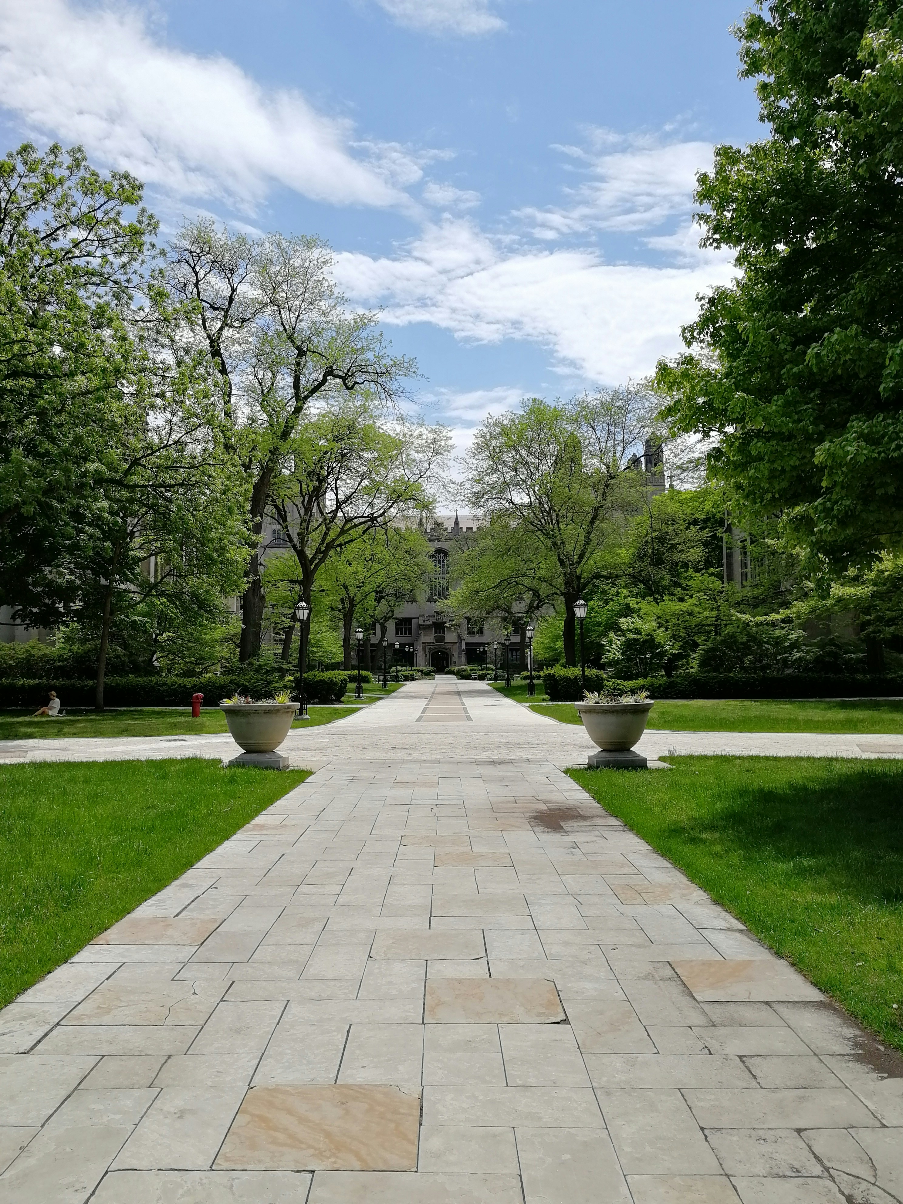 The most elegant form of formal symmetry comes with opting for a single color for the entire walkway. A focal point like a fountain or statue on your walkway will help you draw attention and create a sense of balance in your outdoor space. This idea is perfect for classic and traditional architecture, creating a refined entrance to your home.